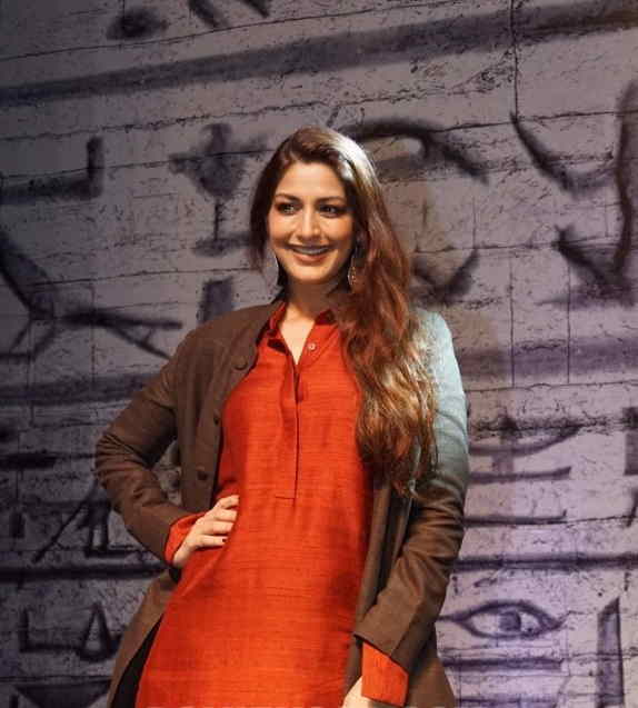 Sonali Bendre's silver earrings highlight her layered look