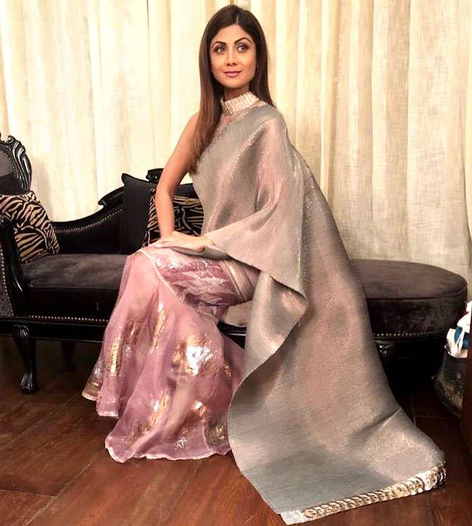 Shilpa Shetty's metallic sari cost at Rs 40,000