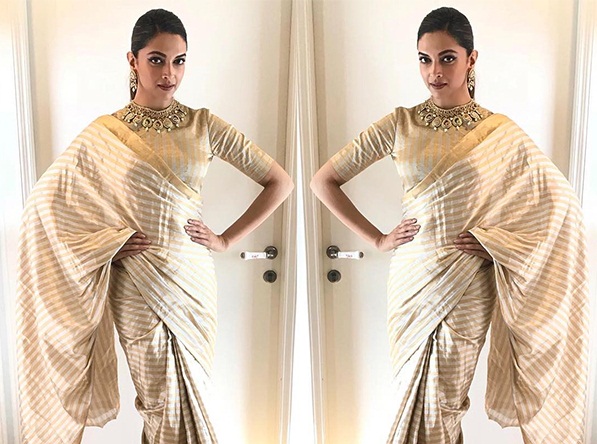 Deepika Padukone looks ETHEREAL in golden striped saree