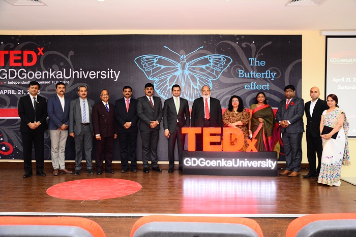 The1st edition of TEDx GD Goenka University opened to an overwhelming full house from people across domains. The program featured 13 speakers who have been a catalyst of change in the society,sharing their stories focusing on the theme “The Butterfly Effect”. “The Butterfly Effect”, says that a tiny change in the state of the system can make significant beautiful difference in the lives of people.