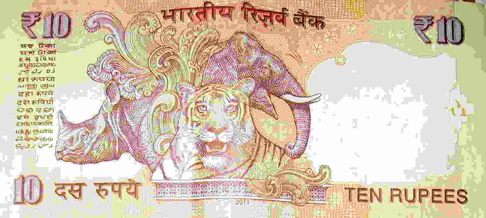 Rs. 10 note- the back side has the rich fauna of India symbolizing the biodiversity of India.