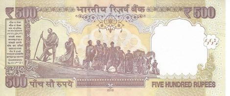 Rs. 500 note- on reverse was the image of Dandi March or Satyagraha the movement which was launched by Gandhi Ji in 1930.