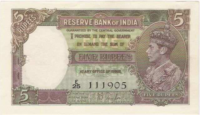 In 1935, Reserve Bank of India was set up and was empowered to issue government of India notes. The first paper note issued by RBI had King George VI’s portrait and was a 5 rupee note, in 1938.