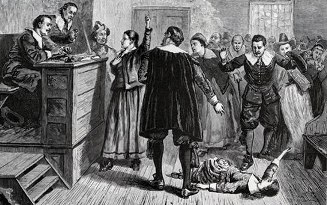 The trials were a series of hearings and prosecutions of people who were accused of being witches in colonial Massachusetts between February 1692 and May 1693. One of the women, named Tituba, is accused of feeding a dog a "witch cake" four days before.