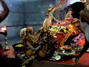 Masani Amman Temple (The Temple of Justice) at Polachi By The Editor | Aug 11, 2016 | 6,105 views Please help spread Hinduism by sharing these articles on facebook: Arulmigu Masani Amman Temple, often referred as Anaimalai Masani Amman Temple, is situated at the confluence of Aliyar River and the Uppar stream, in Coimbatore district of Tamil Nadu about 24 km south-west of Pollachi. At this temple, Sri Masaniamman graces in a 17 feet long reclining form with Her head on the South and holding a skull, serpent, trident and udukkai in her hands looking skyward. This gigantic image of Masaniamman is painted with very bright colours. What fascinates one is not only the size of the image but also the posture of it. Nowhere else can one see the image of the Goddess in a lying posture. Other deities worshipped include Neethi Kal (the stone of justice) and Mahamuniappan. There are several uncommon features about this temple. One of the most noteworthy features of the Masani Amman Temple is that it serves as a welfare government listening to the grievances of the public, rectifying the physical ills of people and as a court of justice easing the suffering of men and women. Devotees record their aspirations, claims and hopes on a piece of paper and submit it to the temple priest to be placed on the trident of the deity. It is firmly believed that the Goddess responds to their prayers within a period of 19 days. There is a stone image in the temple representing the Goddess of Justice with the body of a serpent. This is popularly known as ‘Neethi Kal’ (stone of justice). People harassed by enemies, merchants meeting with loss in business or men and women who have lost their belongings, take bath, wear holy ashes of the shrine and then grind red chillies in the stone grinder of the temple and smear the paste on the ‘Neethi kal’ (stone of justice). History of the Masaniamman Temple There is a historical background for the configuration of this powerful temple. Anaimalai, a place near Pollachi, was ruled earlier by the king called Nanan. He treated the people very badly. During his reign he had a very big mango tree in his farm on the banks of the Aaliyar river, which was very special to him. He was so particular that nobody was permitted to use neither the mangoes nor the leaves from this tree. Once,a group of girls went to the river to take bath and they noticed a mango floating on the river which belongs to Nanan’s tree. One of the girls picked up and ate the fruit. The helpless woman was arrested and produced before the chieftain with her clothes dripping with water. She pleaded not guilty and prayed to the Lord to be set free. She explained that she never committed any offence; if at all it was considered an act of stealth, it was more by chance than by choice. But the ruler did not relent and instead of excusing her the king sentenced her to death. After she was executed, some villagers in that area formed a female statue in lying posture using sand of the graveyard, with the remembrance of the innocent girl and worshipped this as ‘Masani’. This is the origin of the temple. Later Kozhinkhosargal defeated king Nanan and destroyed the mango tree. In front of the sanctum sanctorum is a niche wherein is enshrined Mahamuniappan. The temple claims both legendary and historical origin. Legend relates that during his wanderings in search of Sita, before setting out to Sri Lanka, Rama stayed in Anaimalai in a graveyard, when he modeled an image of the Goddess in clay and worshipped it. Pleased with his devotion, Masaniamman bestowed upon him Her grace for his triumph over Ravana. Festivals at the Masaniamman Temple Devotees flock to the temple in large numbers on Tuesdays and Fridays as well as on Krithigai and newmoon day. Kundam festival is associated with the shrine. Every year on newmoon day of the Tamil month, ‘Thai’, the temple flag is hoisted. On the 14th day at 3 a.m., special worship is performed for the deity. On the 16th day there is the Chithirai Ther (chariot) festival. At 10 pm the holy fire of the kundam is lit. On the 17th day at 9 am devotees, in great excitement and frenzy, jump into a fire pit sprawling to a staggering length of 50 feet for fire-walking. On the 18th day, the flag is lowered and ‘Mahamuni Pooja’ is performed. On the 19th day, holy anointment of the deity takes place (maha abhishekam).